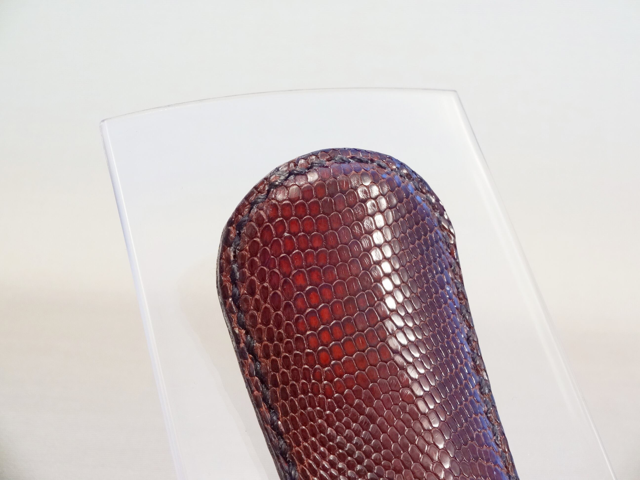 裏革は、ヌメの染料ワックス仕上げの革を使い、ヌメ革本来の風合いが愉しめ、更にワックス仕上げの嫌みないツヤが高級感を感じさせる仕上がりです。