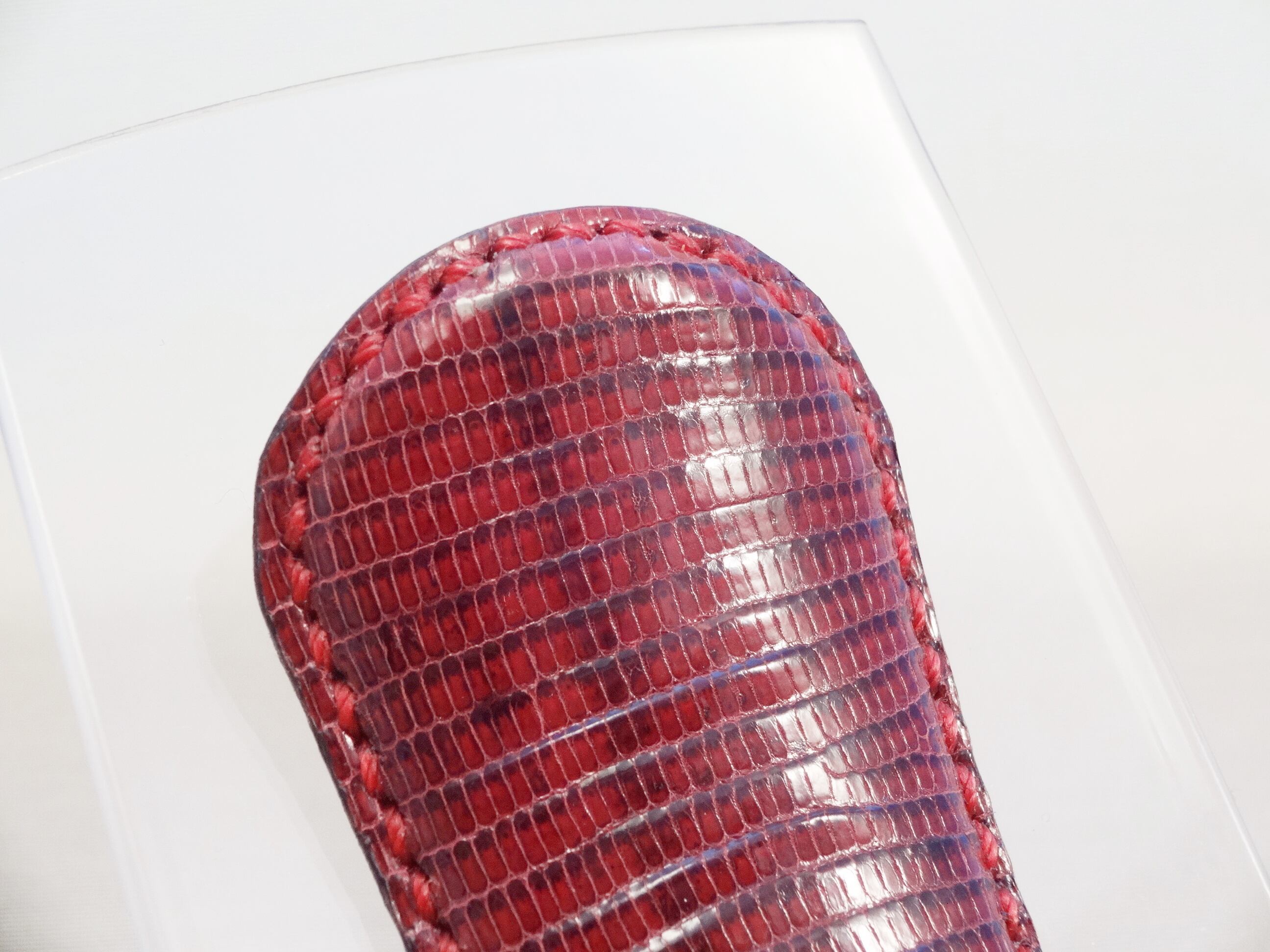 色:ワインレッド(外側)、消炭色(内側)、レッド(糸)