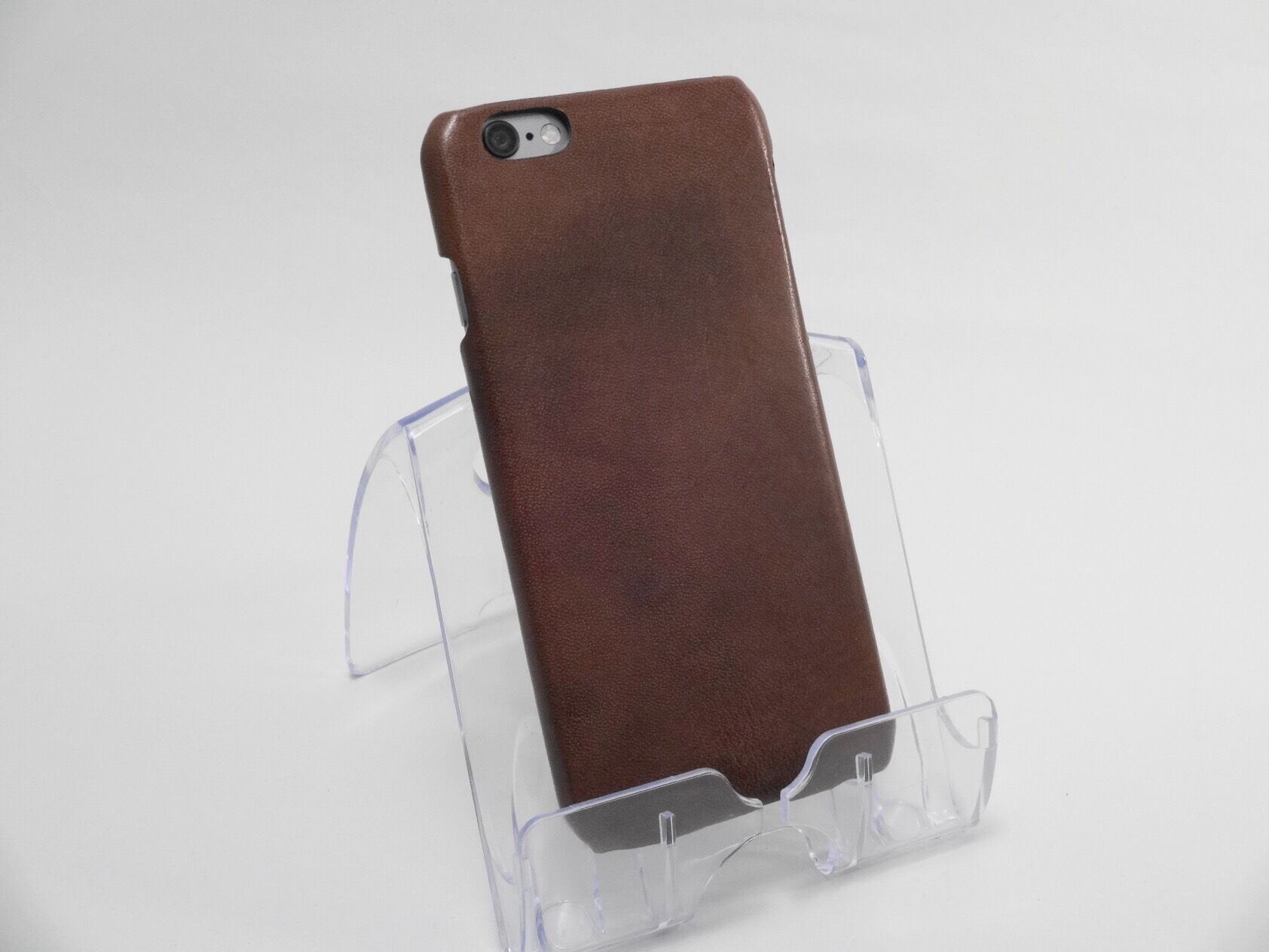 iPhone6用のハードケースです。牛革を貼り合わせ、上品なケースに仕上げました。革の裁断切り口とケースとの接続面に、仕上げ塗料を塗る事で、はがれにくく、滑らかな感触に仕上がっています。