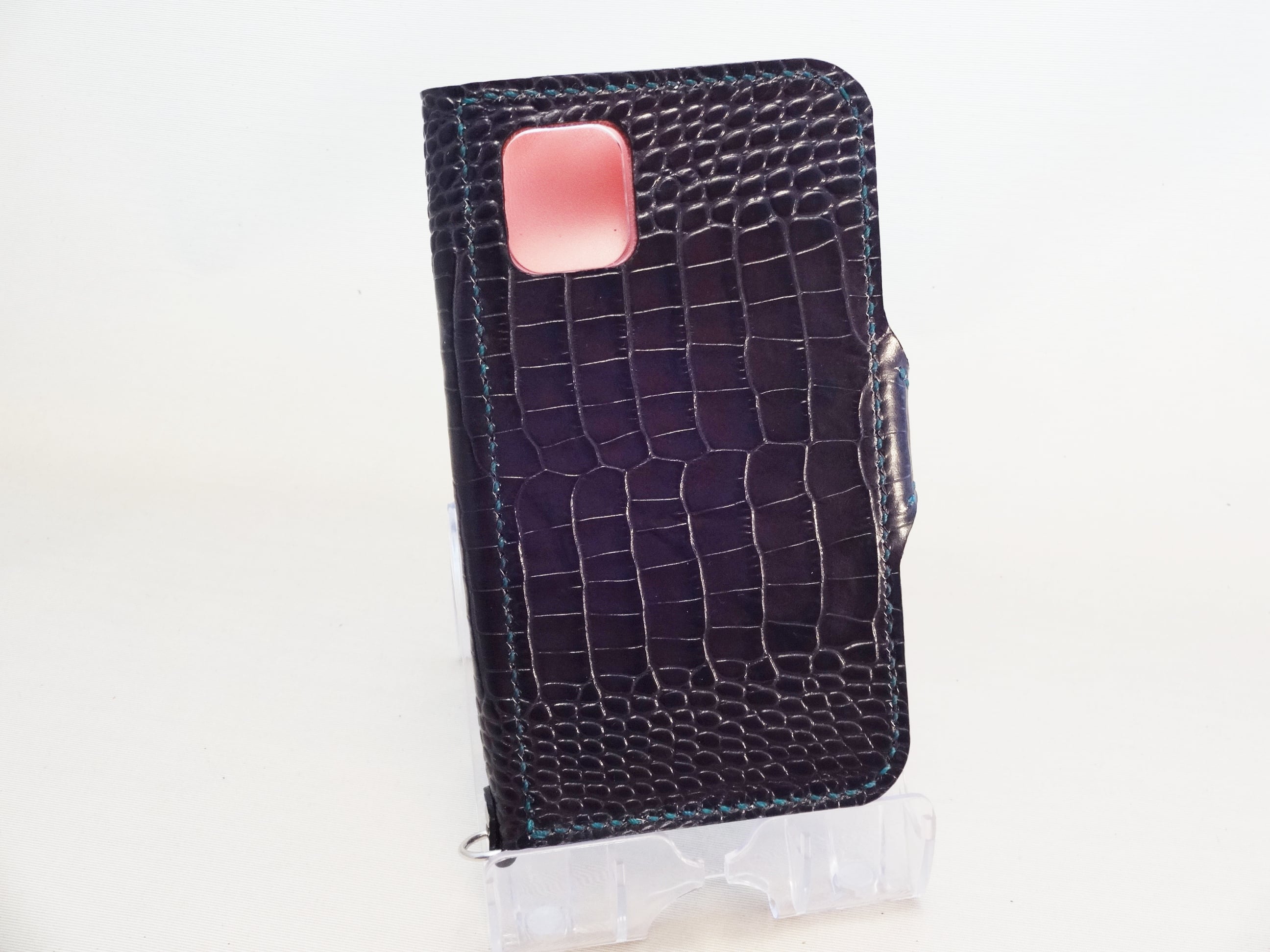 ・外側の革は、茄子紺色のワニ型押しの牛革