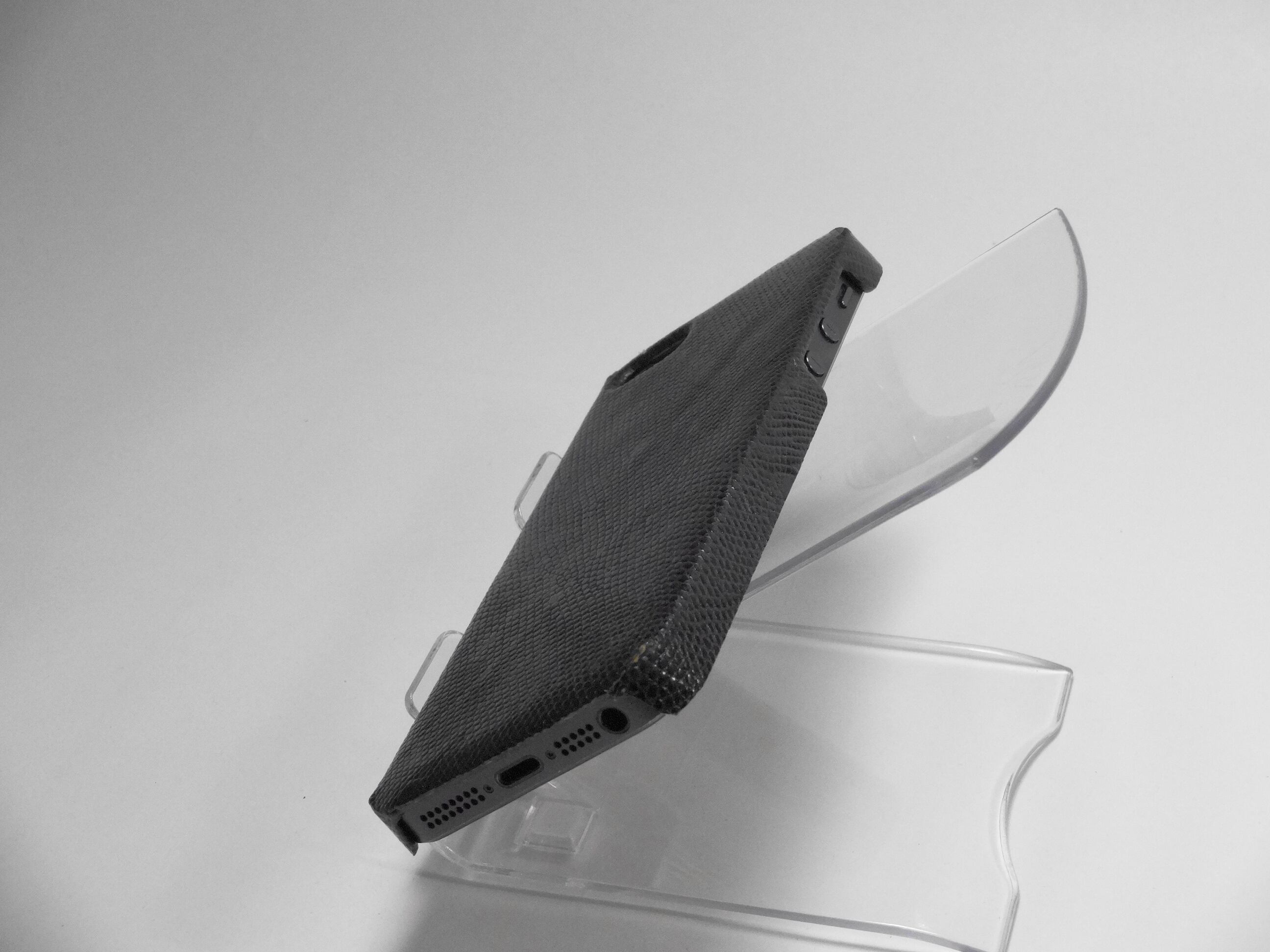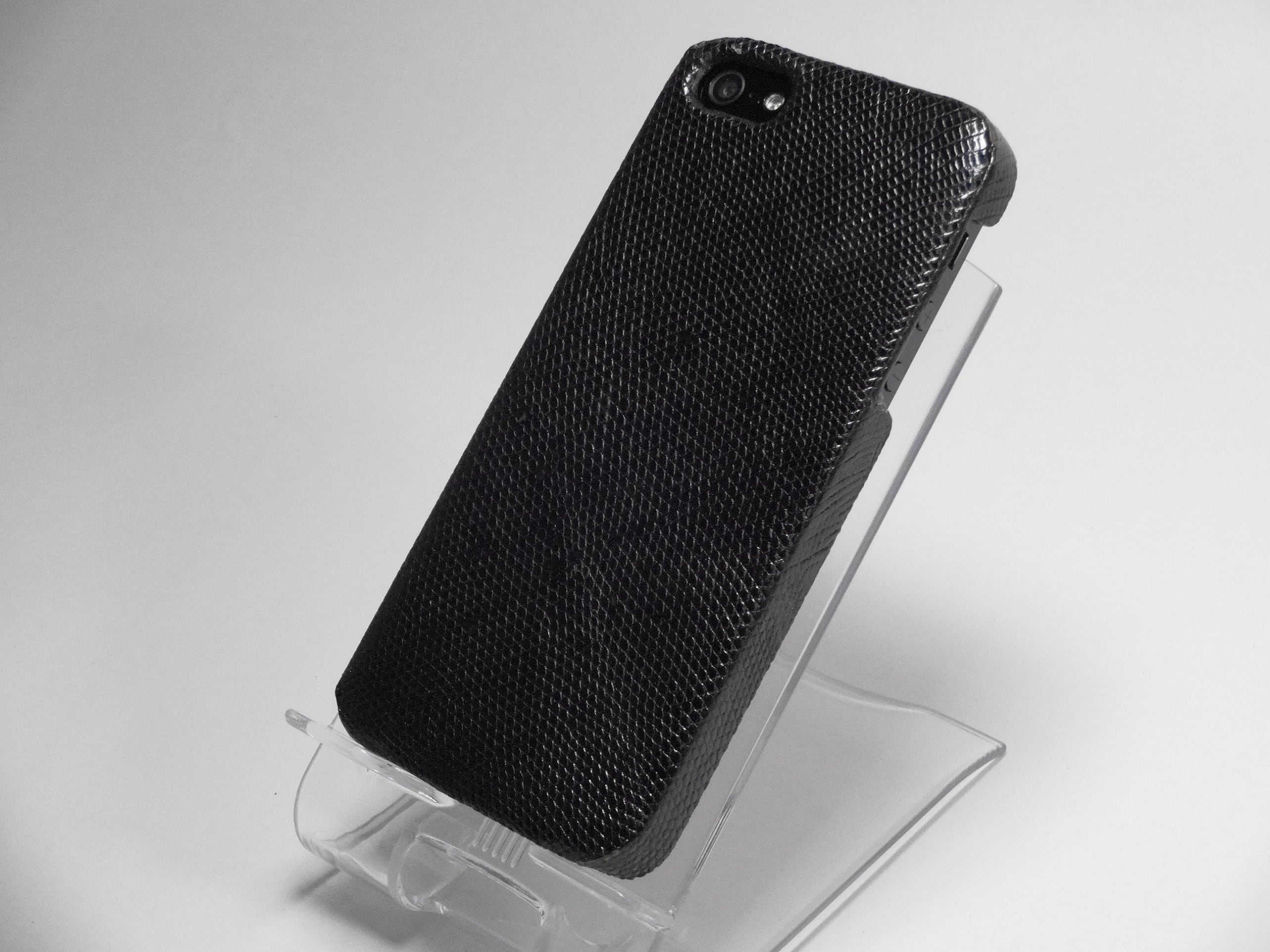 iPhone5,5S,SE用のハードケースです。トカゲ革を貼り合わせ、上品なケースに仕上げました。革の裁断切り口とケースとの接続面に、仕上げ塗料を塗る事で、はがれにくく、滑らかな感触に仕上がっています。